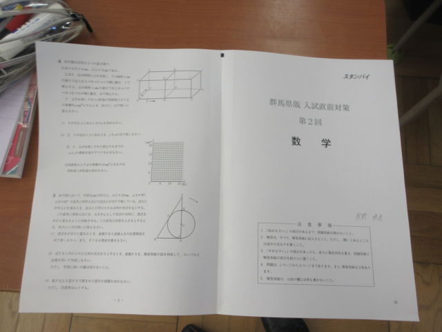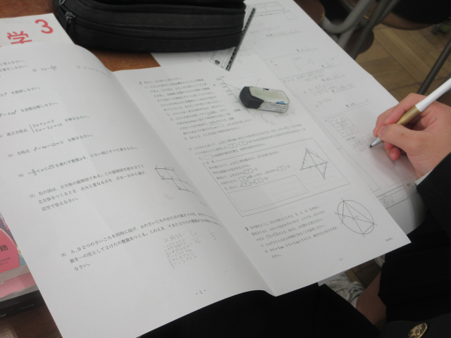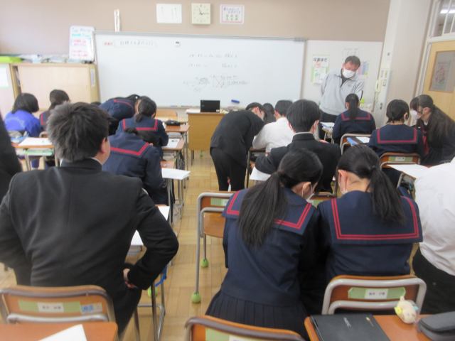 2月13日(金)授業の様子(3年3組 数学) 公開日 2026/02/13 更新日 2026/02/13 できごと 群馬県公立高校入試まで1週間となりました。生徒は「群馬版入試直前対策」で実践問題にチャレンジしています。友達同士教え合いながら、目標に向かい、みんなで頑張っています。 +2