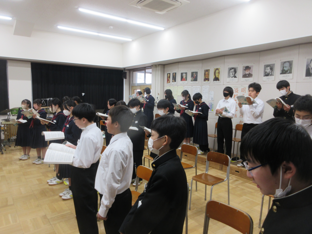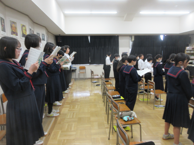卒業式に向け「旅立ちの日に」の合唱練習を行っています。ひとつひとつの言葉のフレーズの意味や込められた想いを確認しながら、練習を進めていまました。1年生らしく、声がよくでていました。