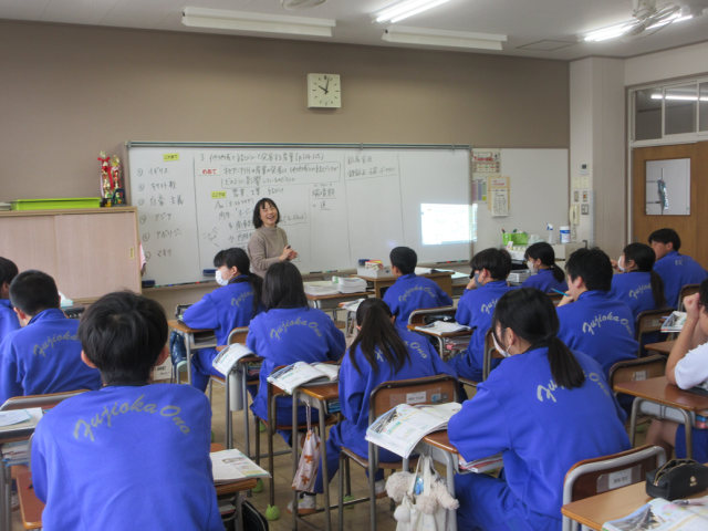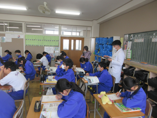 2月26日(木)授業の様子(1年3組 社会) 公開日 2026/02/26 更新日 2026/02/26 できごと オセアニア州の産業について学習しています。農業や工業の特徴と他の地域との結びつきがどのように発展に影響してきたか、資料をみながら考えました。また、学校薬剤師の先生に環境衛生検査をしていただきました。教室環境に問題はないという結果でした。