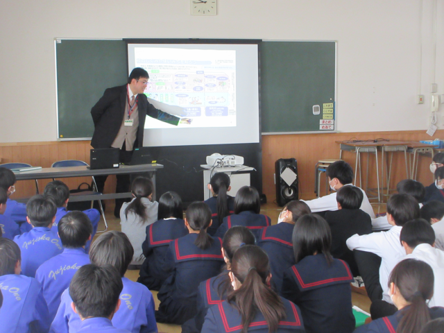 3月9日(月)租税教室(3年生) 公開日 2026/03/09 更新日 2026/03/09 できごと 藤岡税務署の方を講師にお招きして、租税教室を行いました。小学校で学んだことを発展させ、課税について「公平に負担すること」の工夫について学んだり、これからの社会と税について考えたりしました。自分の生活にかかわることとして、真剣に聞いていました。