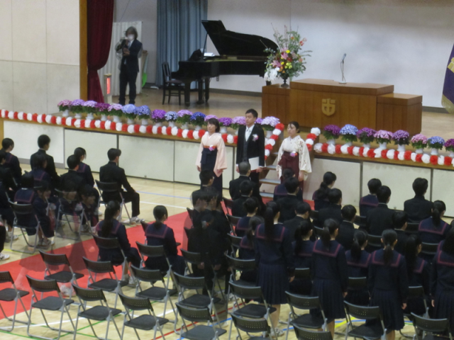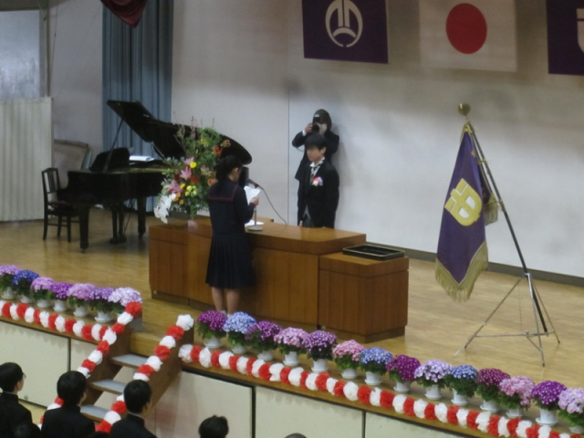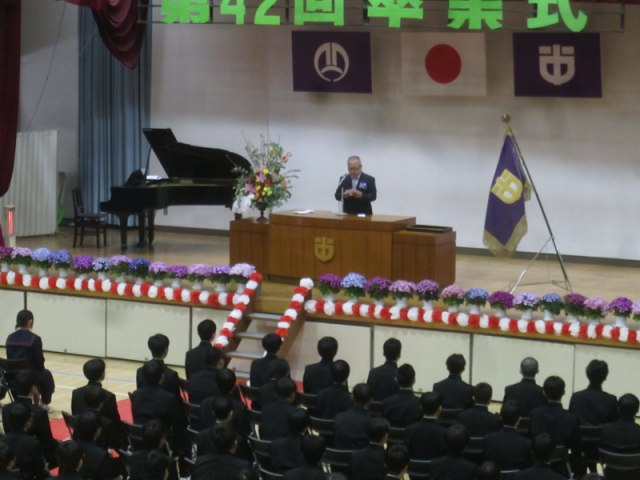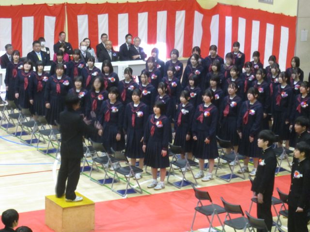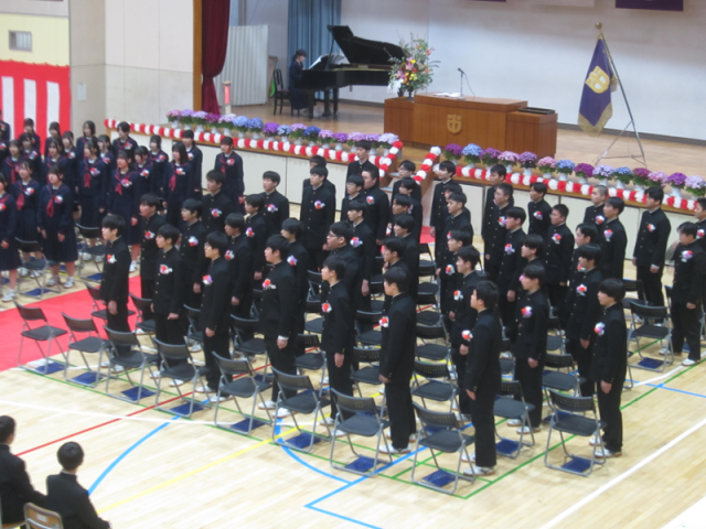 3月13日(金)第42回卒業式 公開日 2026/03/13 更新日 2026/03/13 できごと 第42回卒業式が厳粛に行われました。担任の呼名にしっかり返事をして、堂々と卒業証書を受け取りました。送辞・答辞・卒業合唱と感動のなか、卒業式は終了しました。素晴らしい卒業式でした。本日卒業した99名の皆さん、そして保護者の皆様、卒業おめでとうございました。新たなステージでも自信を持って活躍して下さい。いつまでも応援しています。 +7