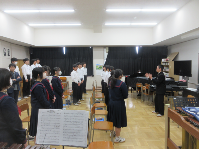 3月23日(月)授業の様子(2年3組 音楽) 公開日 2026/03/24 更新日 2026/03/24 できごと 修了式で歌う校歌の指揮者オーディションを行っていました。それぞれの良さがあり、当日の指揮者は、学級で決めることになりました。この後、大地讃頌の練習が始まりました。 +1