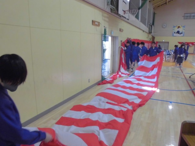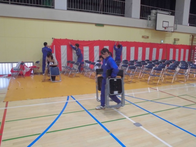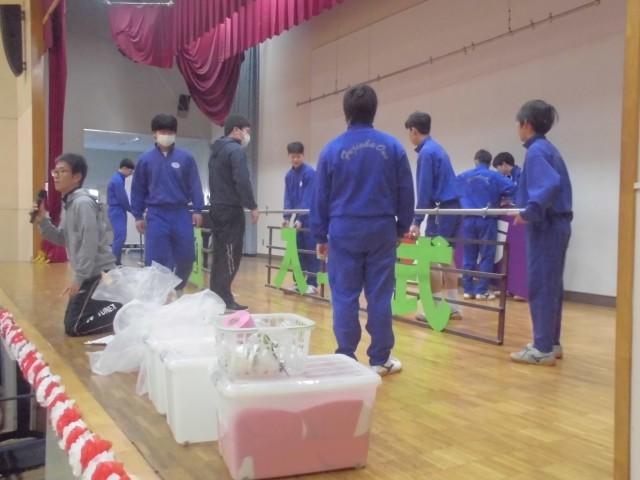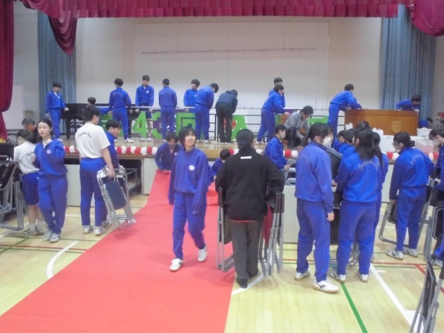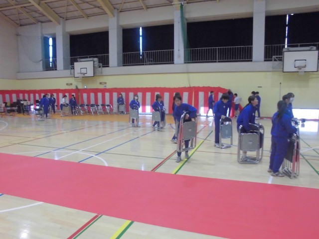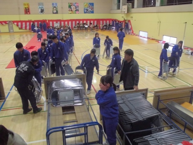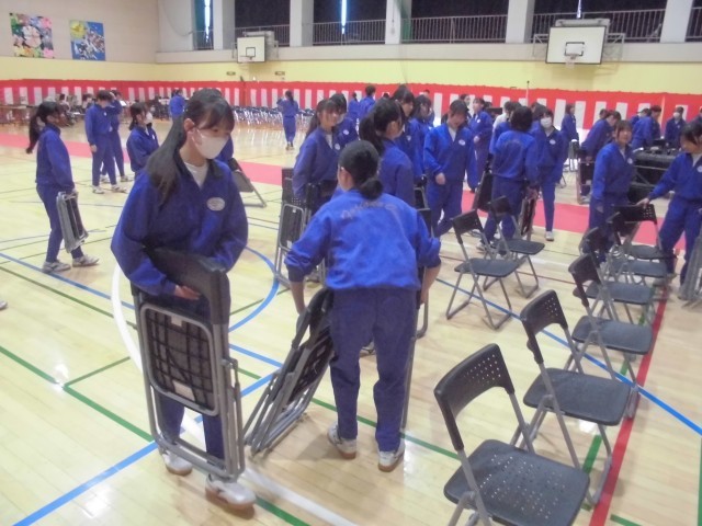 授業前の15分ほどで、あっという間に入学式の会場を3年生が片付けてくれました。さすがですね。