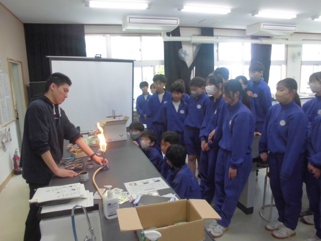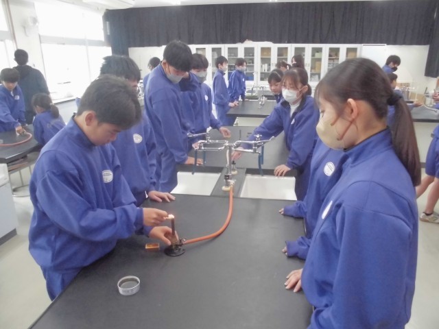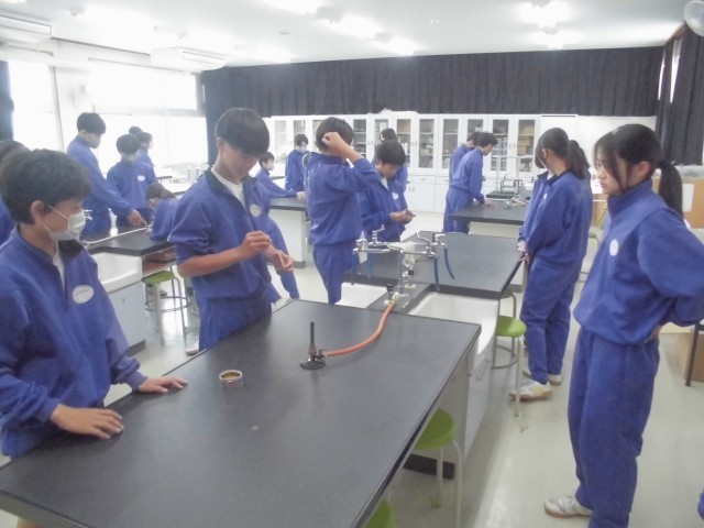 4月15日(水)2年生 理科・数学・体育 公開日 2026/04/15 更新日 2026/04/15 できごと 理科では先生の演示の後、自分たちでガスバーナーを点火する実験、数学は単項式・多項式についての学習、体育はレク的要素を取り入れ運動を楽しんでいる場面でした。 +7
