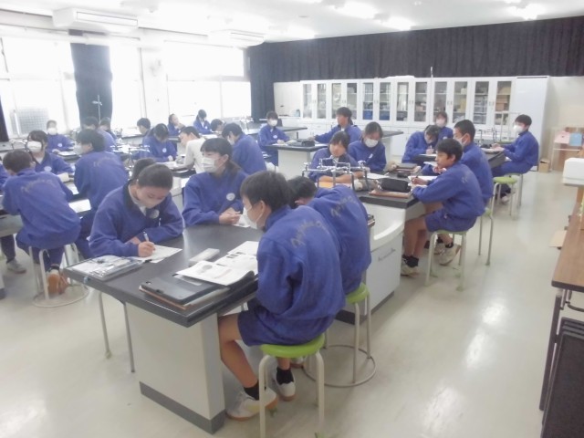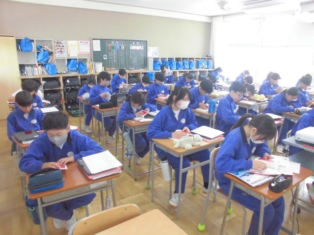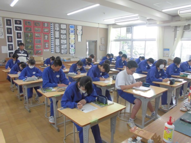 4月17日(金)2年生 英語・理科・美術 公開日 2026/04/17 更新日 2026/04/17 できごと 英語では赤いシートで単語を隠しながらの学習、理科は原子に関する学習、美術はオリジナルの「樹」を描いています。 +7