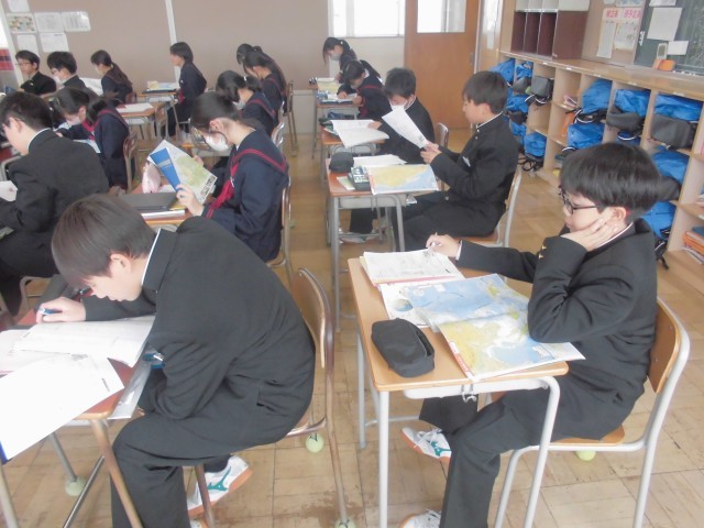 4月23日(木)1年生 理科・社会・数学 公開日 2026/04/23 更新日 2026/04/23 できごと 理科では花のつくりについて、社会は世界の地理について、数学では数直線でマイナスの考え方を確認していました。 +7
