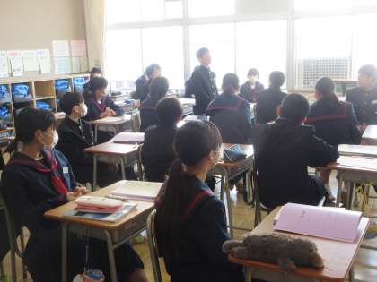 英語で簡単な自己紹介を行いました。like、can、birthdayなどの単語を用いて、皆、上手に自己紹介を行うことができました。