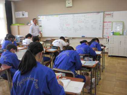 5月 7日(火)授業の様子(1年3組 数学) 公開日 2024/05/07 更新日 2024/05/07 できごと 正負の数の引き算を行っています。引き算の場合は「引く数の符号を変えて加法になおす」ことを課題を解きながら定着させていきました。