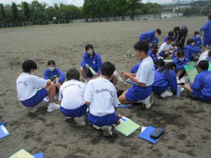 5月 9日(木)授業の様子(1年2組、2年3組 体育) 公開日 2024/05/09 更新日 2024/05/09 できごと 1年2組と2年3組が、合同体育でリレーの練習を行いました。班のタイムを計測しながら、さらにタイムを縮めるにはどうすればよいか話し合いを重ねています。
