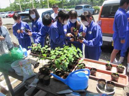 4月下旬に種を撒いた枝豆が、順調に成長しています。今日は、苗の品質や発育をそろえるために間引きして、苗を畑に移植しました。病気や虫の害をうけることなく、このまま大きく育つことを祈りながら、優しく水をあげていました。