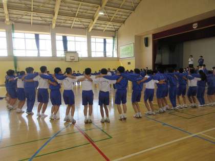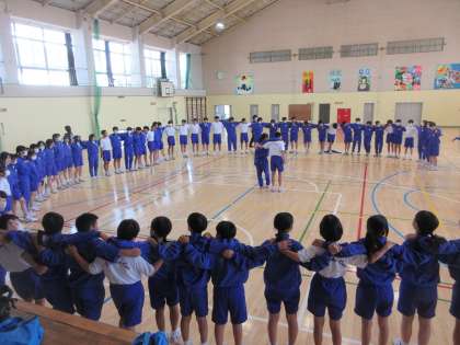 校内陸上記録会に向け、3年生を中心に応援練習が進んでいます。3組団の様子です。