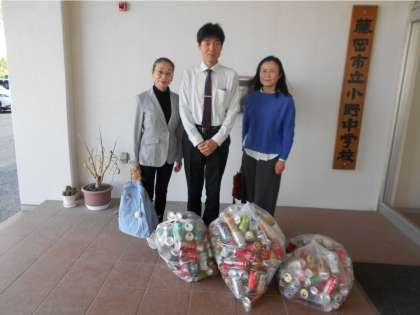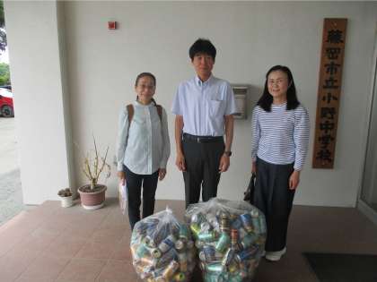 今日は、資源ゴミのアルミ缶をたくさん持ってきてくださいました。(写真上)