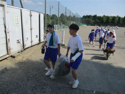 6月12日(水)グリーン・クリーン作戦 1年生(2) 公開日 2024/06/12 更新日 2024/06/12 できごと 暑い日だったので、予定より少し早めに活動を切り上げました。校庭の木々もさっぱりし、爽やかな風が通りやすくなりました。ご協力くださった保護者みなさまも大変ありがとうございました。今後ともよろしくお願いします。