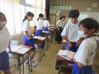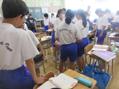9月17日(火)授業の様子(1年3組 英語) 公開日 2024/09/17 更新日 2024/09/17 できごと 代名詞の変化について、学んでいます。ペアになって、名前についての会話をしながら、代名詞の変化を身に付けています。楽しそうにコミュニケーション活動をしていました。