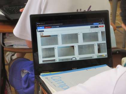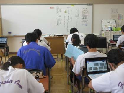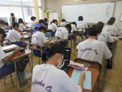 9月19日(木)授業の様子(2年3組 国語) 公開日 2024/09/19 更新日 2024/09/19 できごと 2年生の国語は、「盆土産」の読みの学習です。盆土産では、「エビフライ」という言葉がたくさん出てきます。今日は「エビフライ」は作中でどのような役割をもっているか考えました。タブレットPCで考えを交流しながら、自分の考えをまとめています。
