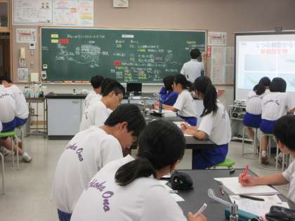 9月19日(木)授業の様子(2年2組 理科) 公開日 2024/09/19 更新日 2024/09/19 できごと 細胞について学習しています。生物は多細胞生物と単細胞生物に分けられること、そして単細胞生物については、具体例をあげながらまとめました。