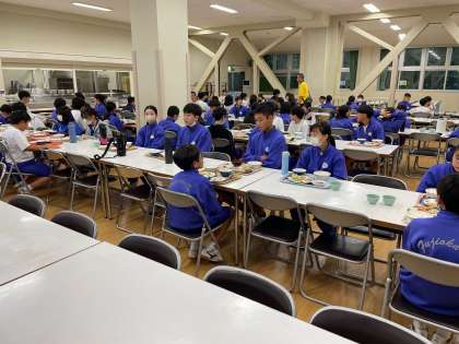 カッター実習を終え、お腹ぺこぺこの生徒たち。 各係の仕事をしてから待ちに待った夕食です。
