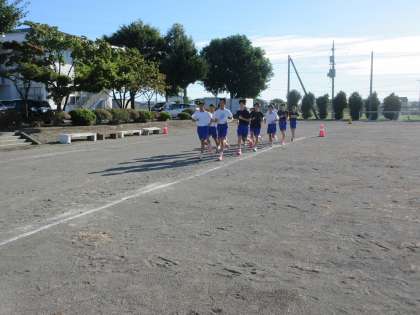 9月26日(木)駅伝練習 公開日 2024/09/26 更新日 2024/09/26 できごと 郡市駅伝大会まで1週間余りとなりました。1年生が赤城高原学校のため、2、3年生での練習でした。駅伝部、頑張っています。