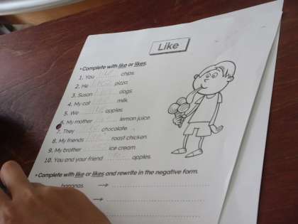 10月7日(月)授業の様子(1年3組 英語) 公開日 2024/10/07 更新日 2024/10/07 できごと 一般動詞の変化について学んでいます。主語の違いにより、likeがどのように変化するかワークシートで練習しました。