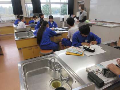 10月9日(水)授業の様子(2年2組 家庭科) 公開日 2024/10/09 更新日 2024/10/09 できごと 調理実習に向けて、計画書を作成して、準備する食材や調理方法、役割分担等を確認しました。メニューは「ジューシーなスパゲッティミートソース」と「かき玉汁」です。班で協力して、美味しい料理ができそうです。