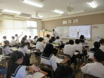 10月15日(火)授業の様子(2年1組 英語) 公開日 2024/10/15 更新日 2024/10/15 できごと 不定詞について学んでいます。「〜してうれしい」など、不定詞の「副詞的用法」により感情の原因を表す練習を行いました。しっかり挙手ができています。