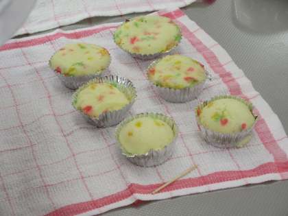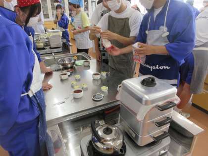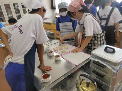 10月15日(火)授業の様子(3年3組 家庭科) 公開日 2024/10/15 更新日 2024/10/15 できごと 幼児のためのおやつづくりに挑戦しました。メニューはカップケーキとお茶です。班ごとに工夫を凝らした美味しそうなカップケーキが出来上がっていました。