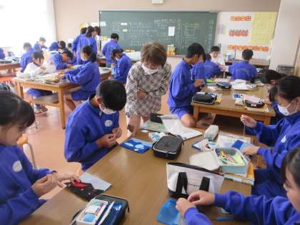 10月22日(火)授業の様子(1年3組 家庭科) 公開日 2024/10/22 更新日 2024/10/22 できごと ウォールポケットも完成に近づいてきました。個性ある素敵な作品ばりです。今日も「おのハンモック」から家庭科ボランティアの方が2名、来てくださいました。きめ細かに、支援していただきました。