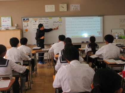 「タイの水かけ祭り」について書かれた英文をとおして、不定詞の形容詞的用法について学んでいます。水かけ祭りに興味を抱きながら、不定詞の表現方法について理解を深めていました。