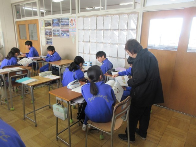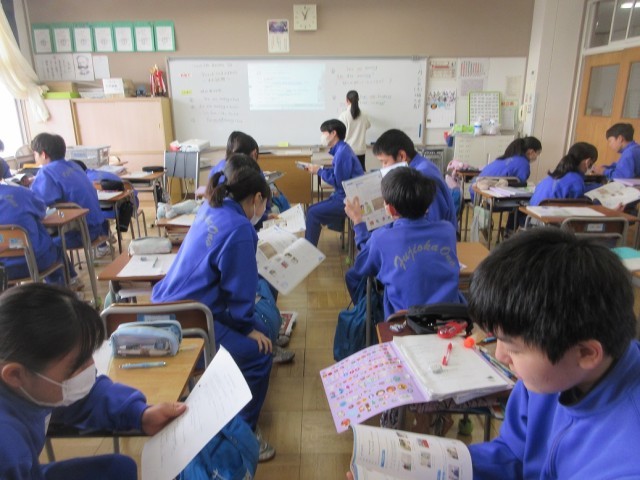 3月6日(木)授業の様子(1年3組 英語) 公開日 2025/03/06 更新日 2025/03/06 できごと 現在進行形の疑問文について学習しています。今していることを尋ねる英文を読み合いながら、表現方法について身に付けていました。