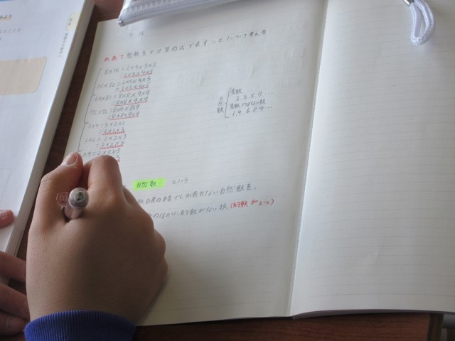 4月16日(水)授業の様子(1年2組 数学) 公開日 2025/04/16 更新日 2025/04/16 できごと 整数をかけ算の式で表しながら、数について考察しました。自然数や素数、素因数分解についてノートにまとめながら、学習内容の定着を図っていました。