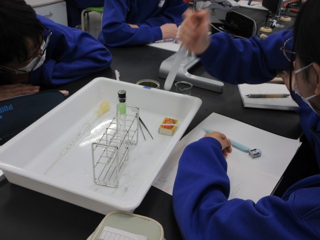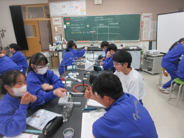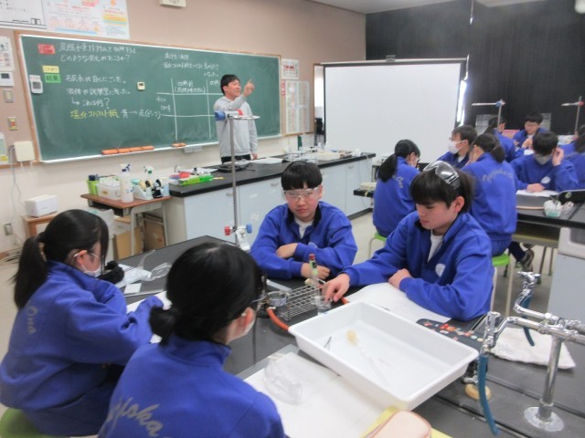 4月17日(木)授業の様子(2年2組 理科) 公開日 2025/04/17 更新日 2025/04/17 できごと 化学変化について学習しています。炭酸水素ナトリウムを加熱すると、どのような物質に変化するか実験を行いました。発生した気体や液体の性質について調べ、物質を特定することができました。