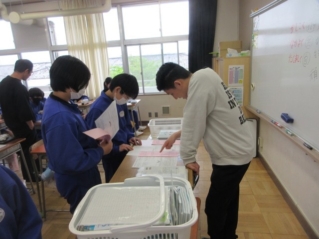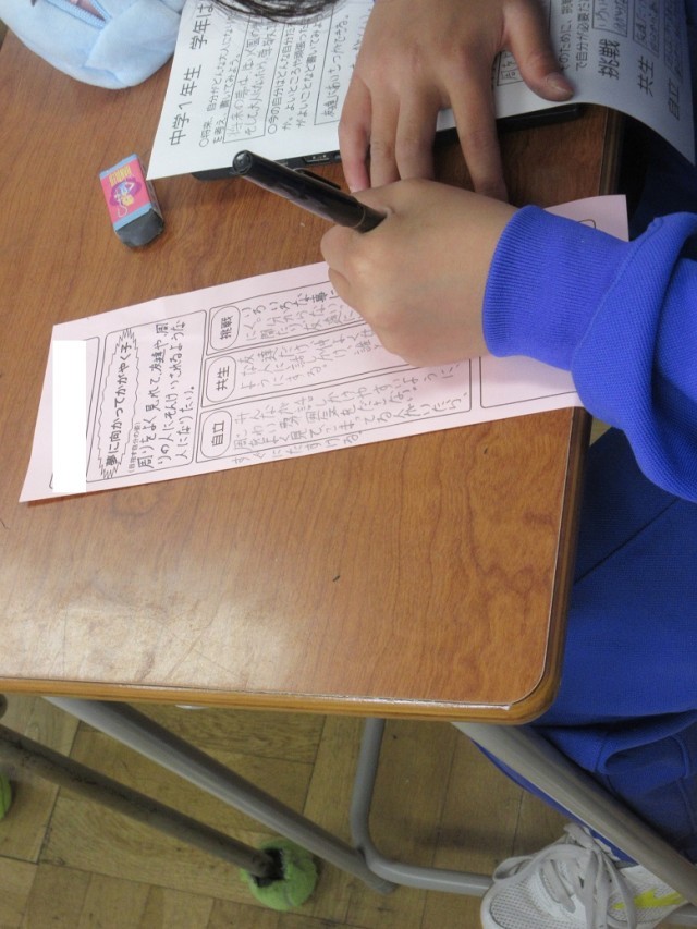 1組の生徒も、自分の長所や短所、頑張りたいこと等、担任や学年主任と相談しながら、個人目標を考えました。