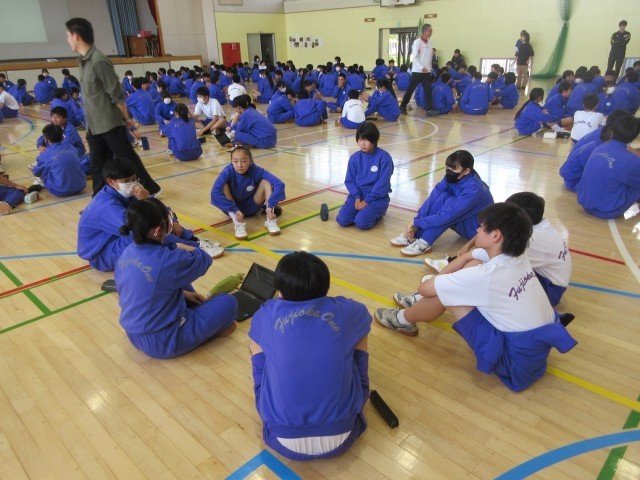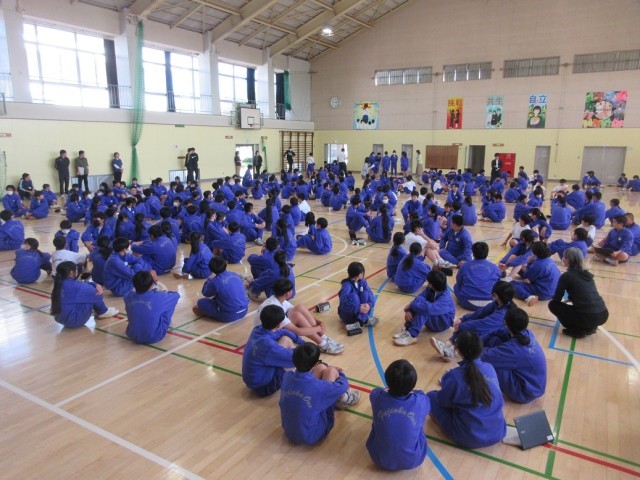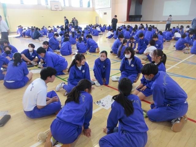 6校時、今年度、最初の「きずなタイム」がありました。これは、1〜3年生の縦割り班を作り、様々な活動を通して学年の枠を超えた交友関係を深めていこうという時間です。まず、各学級団の団長・副団長が決意表明しました。その後、各学級団の縦割り班を確認し、バースデーラインや自己紹介、すごろくトークで絆を深めていました。