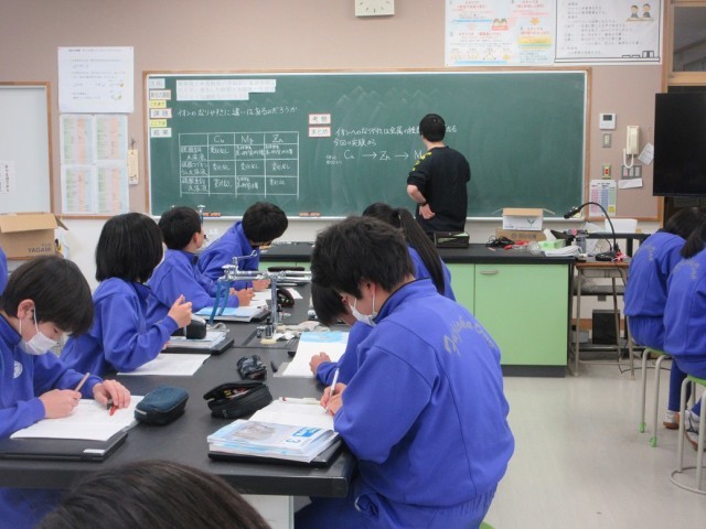 5月2日(金)授業の様子(3年3組 理科) 公開日 2025/05/02 更新日 2025/05/02 できごと 化学変化とイオンについて学習しています。イオンのでき方、イオンのなりやすさ等、イオンが生じる仕組みを丁寧にノートにまとめていました。