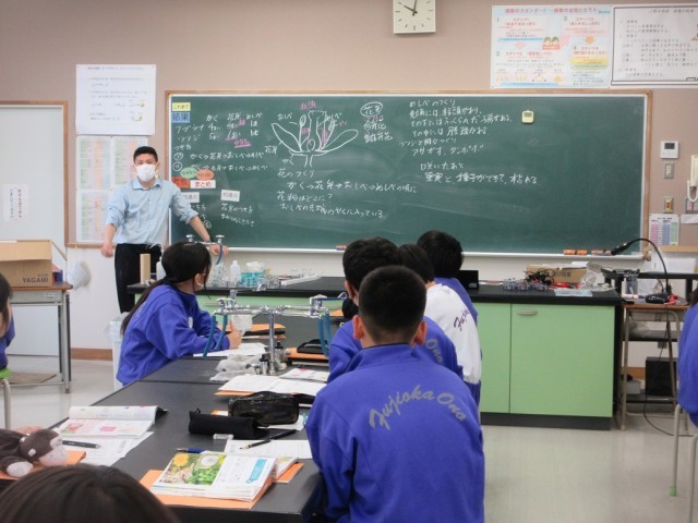 5月12日(月)授業の様子(1年2組 理科) 公開日 2025/05/12 更新日 2025/05/12 できごと 花のつくりについて学んでいます。雄しべや雌しべのつくり、種子や果実への変化のしくみ等、観察したり、イラストを描いたりしながら確認していきました。