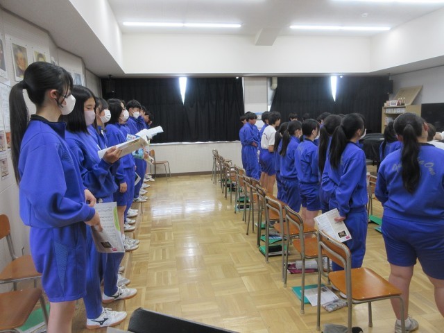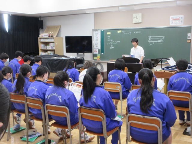 3年1組は音楽で、滝廉太郎が作曲した「花」を題材に学習を行っています。これまでは、曲の情景を思い浮かべながら、作曲者の工夫について考えました。今日は、二部合唱にチャレンジしました。