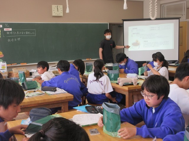 5月22日(木)授業の様子(2年3組 技術科) 公開日 2025/05/22 更新日 2025/05/22 できごと 枝豆栽培が始まりました。栽培計画を立てた後、ベルポットを組み立て、外で種をまきました。成長が楽しみです。