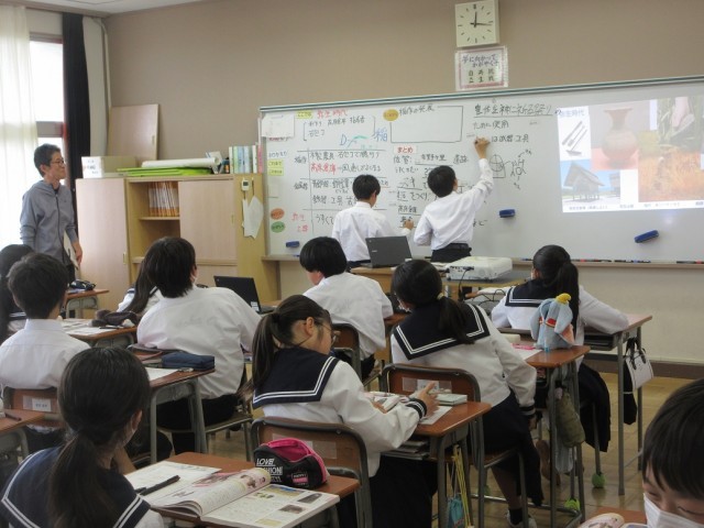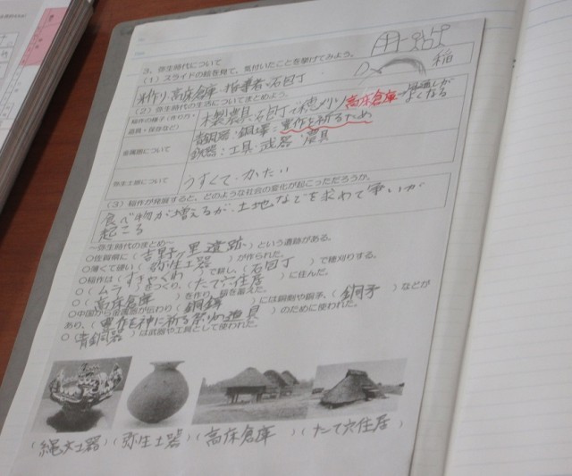 弥生時代の日本列島の人々の生活について考えました。スライドの資料をみながら、気付いたことをまとめていきました。