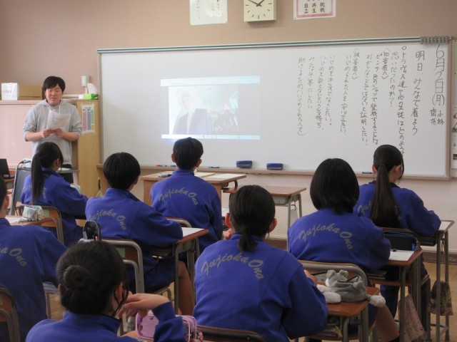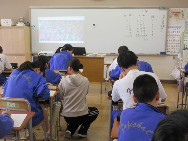 6月2日(月)人権道徳(2年生) 公開日 2025/06/02 更新日 2025/06/02 できごと 前期人権週間を前に、2年生が「いじめ問題」を題材にした道徳を行いました。いじめが起こったとき、どう行動するか考えるとともに、誰もが安心して過ごせる社会にするために、どんなことが大切か考えを深めていました。(左:1組、中:2組、右:3組)