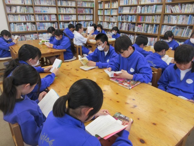 1年3組は、読書活動を充実させるために、国語の時間を使い、図書館で自分の気に入った本を探しました。この機会に本を借りた生徒も多くいました。明日からの朝読書の時間が楽しみになったことかと思います。