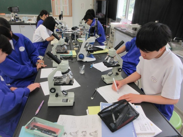 6月11日(水)授業の様子(2年2組 理科) 公開日 2025/06/11 更新日 2025/06/11 できごと 生物のからだの仕組みについて学習しています。タマネギの表皮細胞を観察しました。プレパラートを上手に作成し、しっかり観察記録を残すことができていました。