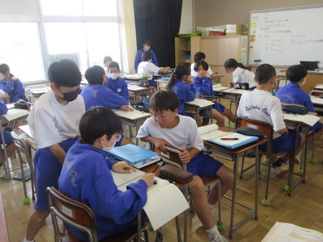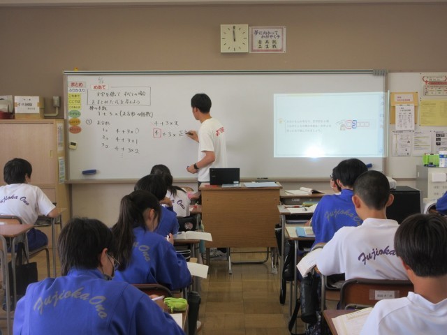 6月16日(月)授業の様子(1年1組 数学) 公開日 2025/06/16 更新日 2025/06/16 できごと 文字を使って、すべての場合をまとめた式をつくりました。具体的な場合を想定しながら、友達と相談しながら式をつくることができました。