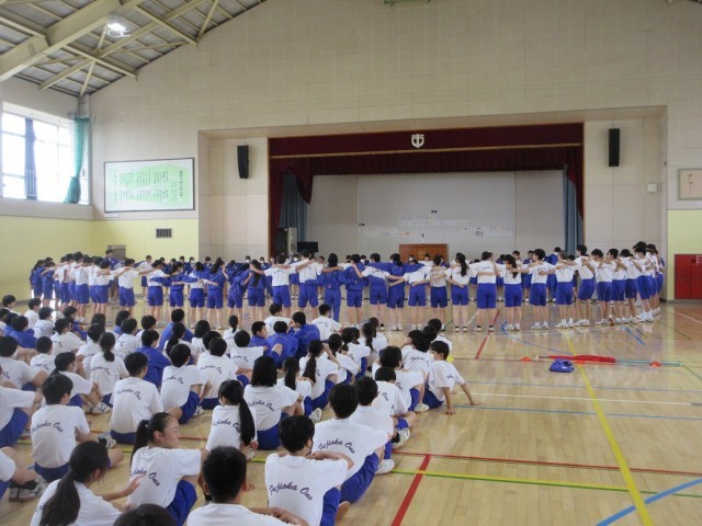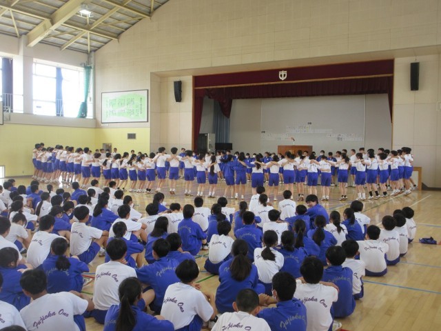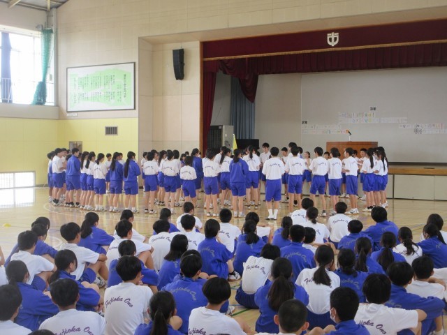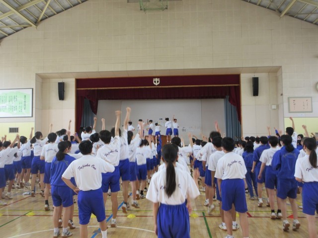 6月16日(月)球技大会結団式 公開日 2025/06/16 更新日 2025/06/16 できごと 5校時、球技大会に向けて結団式が行われました。校庭で行う予定でしたが、熱中症予防のため、体育館での実施となりました。団長を中心に団ごとに団結を深めるとともに、優勝を目指し決意を新たにしました。(左:1組団、中:2組団、右:3組団) +1
