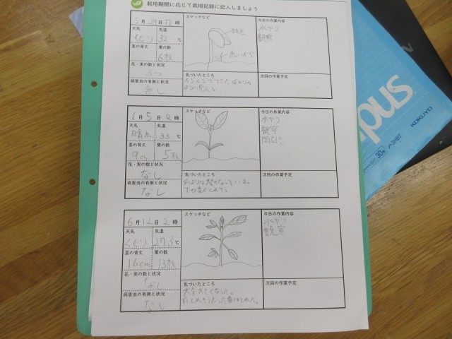 6月18日(水)授業の様子(2年3組 技術科) 公開日 2025/06/18 更新日 2025/06/18 できごと 栽培の分野では、枝豆を育てています。先週よりも随分と大きくなって、生徒は驚いていました。定期的に成長の様子を栽培記録に残しています。