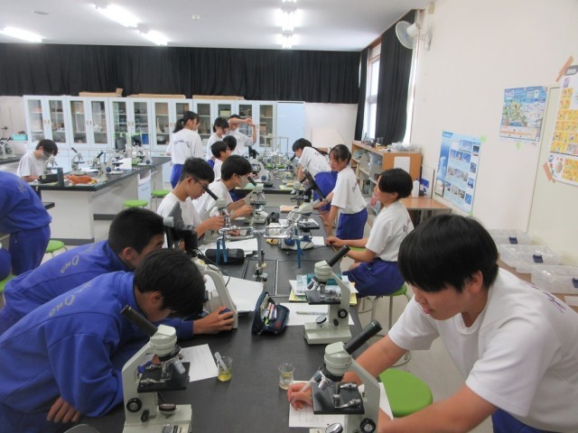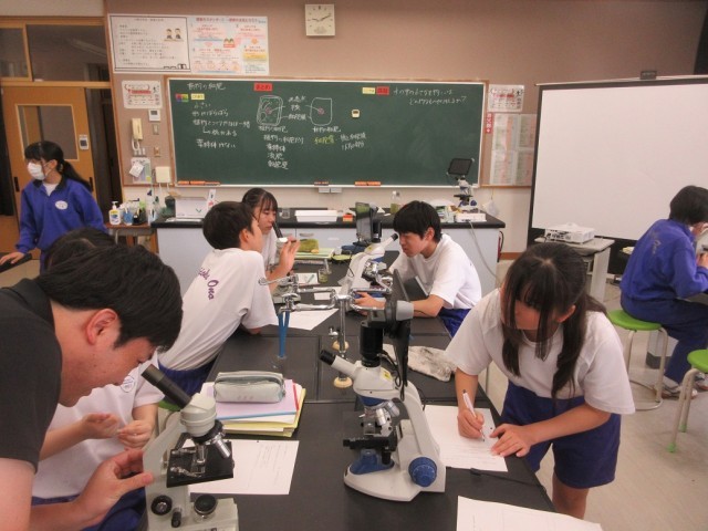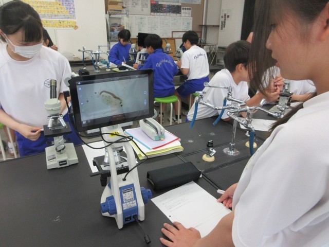6月20日(金)授業の様子(2年2組 理科) 公開日 2025/06/20 更新日 2025/06/20 できごと 水の中にはどのような小さな生物がいるか顕微鏡で観察しました。ミジンコ、ケイソウ、アオミドロ等々、様々なプランクトンを観察することができました。生きているプランクトンを発見して、嬉しそうにスケッチしていました。試料の水は、教頭先生が近所の池や田んぼから採取してくれたものです。