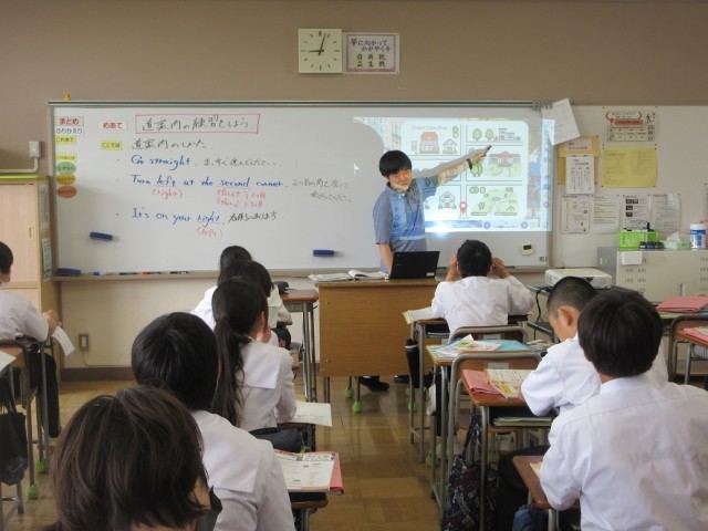 6月20日(金)授業の様子(1年1組 英語) 公開日 2025/06/20 更新日 2025/06/20 できごと 道案内の表現方法について学んでいます。「Go straight」「Turn left(right)」「It's on your right(left)」など、いくつかの表現方法を組み合わせながら、様々な道案内をすることができました。
