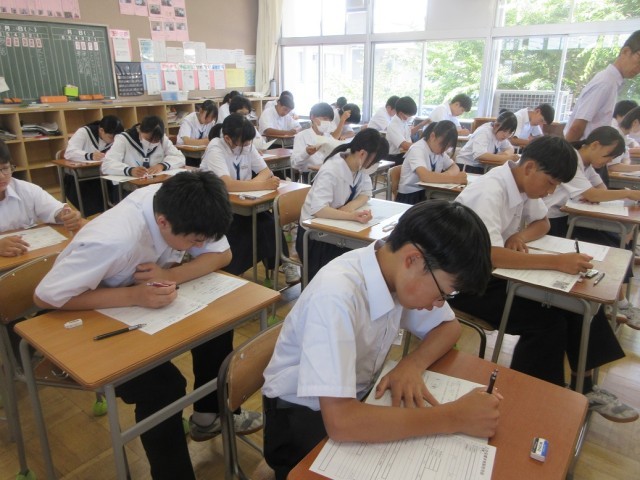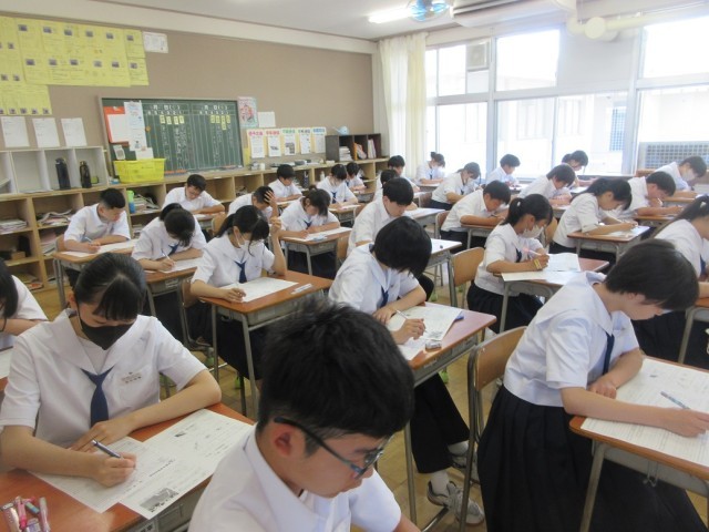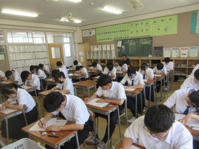 期末テスト2日目、保健体育、数学、音楽、理科のテストを実施しました。写真は、保健体育のテストの様子です。