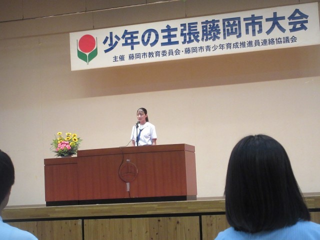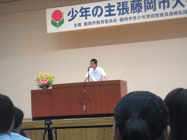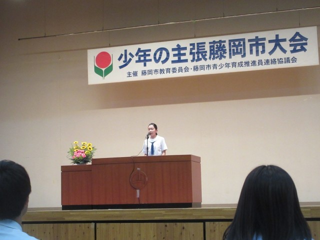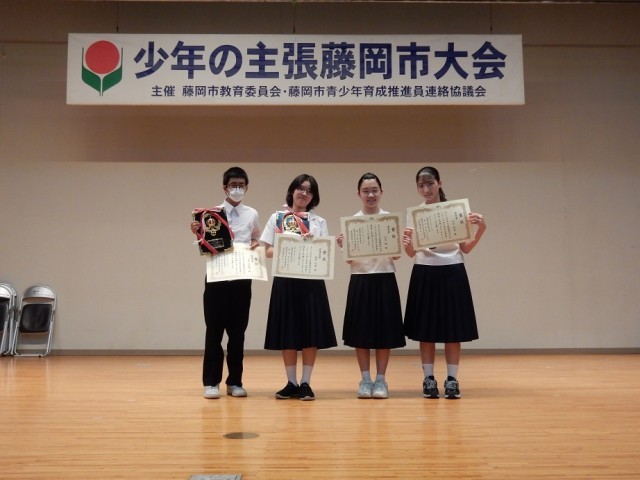 第47回少年の主張藤岡市大会が藤岡市民ホールを会場に開催されました。市内5校の代表生徒が、日頃考えていることや感じていることを、中学生らしい新鮮な視点で主張しました。本校から出場した4名の生徒たちも保護者の方々が見守る中、聴いている人たちの心に届く素晴らしい主張を堂々と発表してしました。校内大会の時も立派でしたが、さらに磨きがかかり、大舞台で自分の考えをしっかりと発表することができました。2名が最優秀賞、2名が優秀賞をいただきました。最優秀賞の2名は、藤岡市の代表として、8月2日に開催される、西部地区大会に出場します。4名の代表の皆さん、今日まで大変お疲れ様でした。