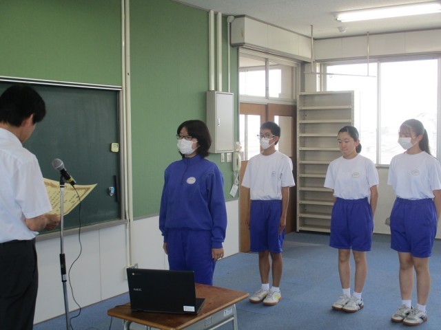 6月30日(月)表彰・会礼 公開日 2025/06/30 更新日 2025/06/30 できごと 6校時、オンラインで表彰・会礼を行いました。今日の表彰は、「藤岡多野中体連夏季大会」「藤岡市民陸上競技大会」「少年の主張藤岡市大会」でした。表彰されるにふさわしい返事、立ち振る舞いで賞状を受けていました。 +4
