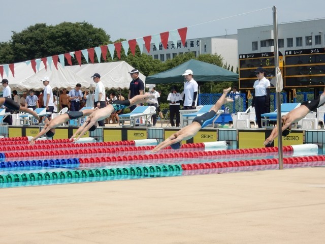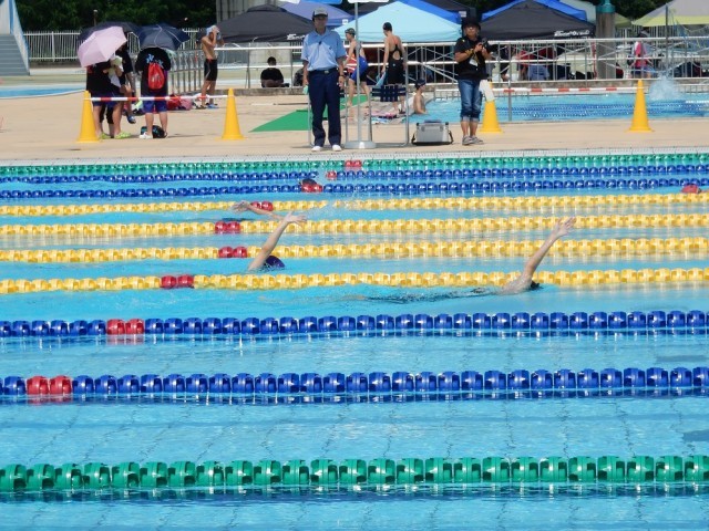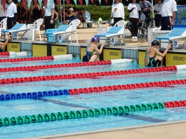 7月5日(土)5地区中体連水泳競技大会 公開日 2025/07/07 更新日 2025/07/07 できごと 高崎浜川プールを会場に5地区中体連水泳競技大会が開催されました。これまで、西毛地区と高崎地区が合同で開催していた本大会ですが、前橋敷島県営プール改修のため、今年度は前橋地区、伊勢崎佐波地区、渋川北群馬地区との合同開催となりました。本校から、3年男子1名、1年女子1名が出場し、タイムや順位を競い合いました。蒸し暑いなか、練習の成果を発揮し、1名が県大会に出場することになりました。 +1
